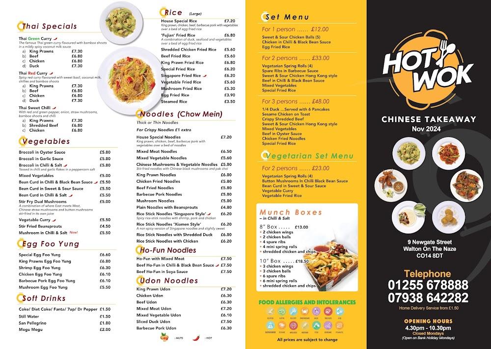 Nestled at 9 Newgate St, Walton on the Naze CO14 8DT, Hot Wok prides itself on offering an authentic taste of Chinese cuisine, a refreshing find in this charming seaside town. The owners infuse a personal touch, aiming to make every visit special and catered to individual preferences.